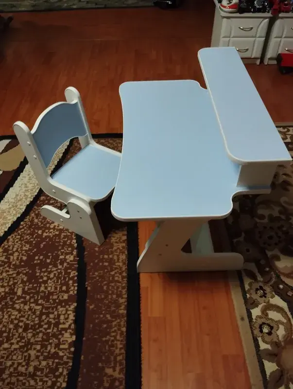 Детский растущий стол и стул сочетает в себе функциональность с современным дизайном, создавая уютное и яркое пространство в детской комнате.